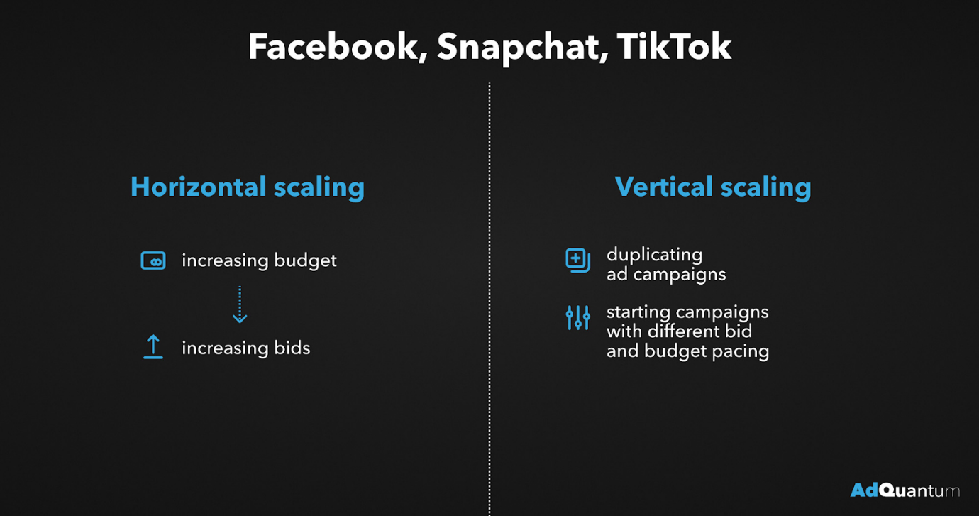 Vertical scaling (increasing budget on high-performing campaigns) and horizontal scaling (expanding your reach to new audiences) are both effective ways to grow.